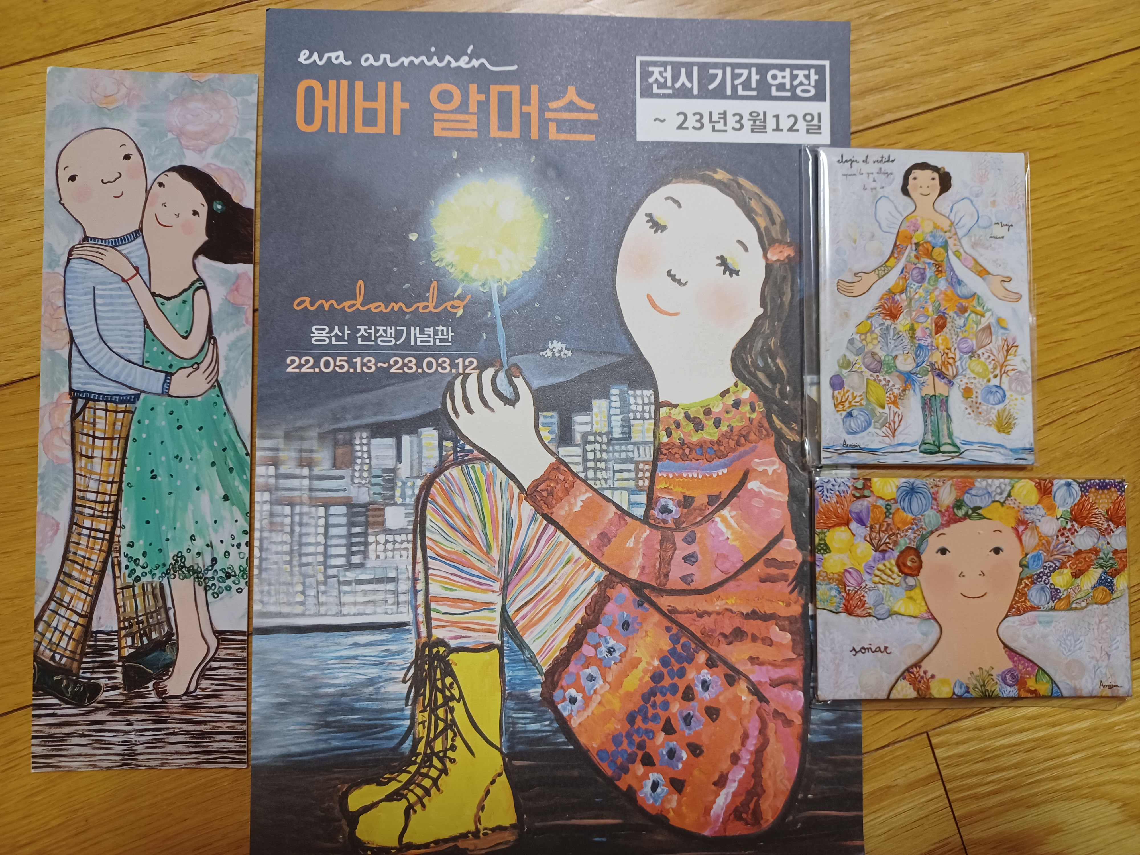전시장에서 전 냉장고 자석을 구입해 왔습니다. 입구에서 가져온 팸플릿과 함께 찍어 보았습니다.