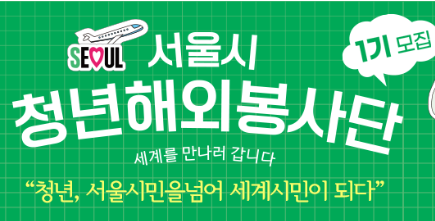 서울시에서 서울시민을 넘어 세계의 시민이 될 청년을 모집합니다. 국제사회의 경험과 봉사활동의 기회를 제공합니다. 교육 · 문화 · 보건 · 환경 등의 다양한 분야를 접해보고 현재사회의 긍정적인 변화를 이끌어낼 인물로 키워내기 위한 기회를 제공해 줍니다.