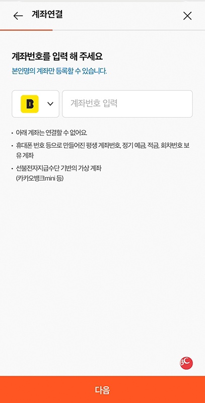 ② 온누리 상품권을 살 돈이 들어있는 계좌와 카드를 등록합니다