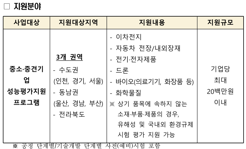 제조(이차전지, 자동차 내외장제, 드론 등) 친환경 관리(바이오, 의료기기, 화장품) 구축사업 성능평가 지원 사업 모집 - 수도권,전북,동남권
