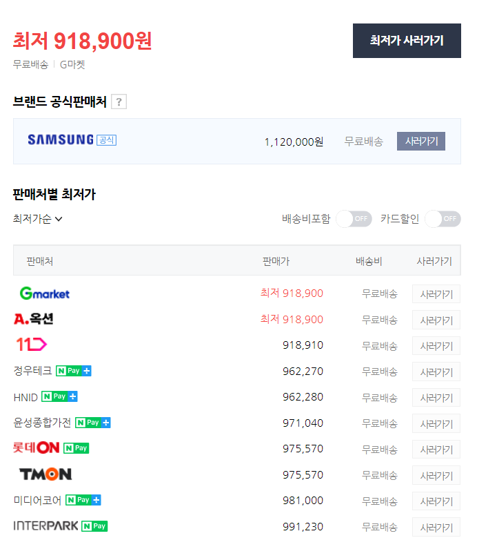네** 검색하시면 쇼핑몰별 가격대는 여러 군데가 나오니, 편하신 쪽으로 이용하셔도 괜찮을 듯합니다.