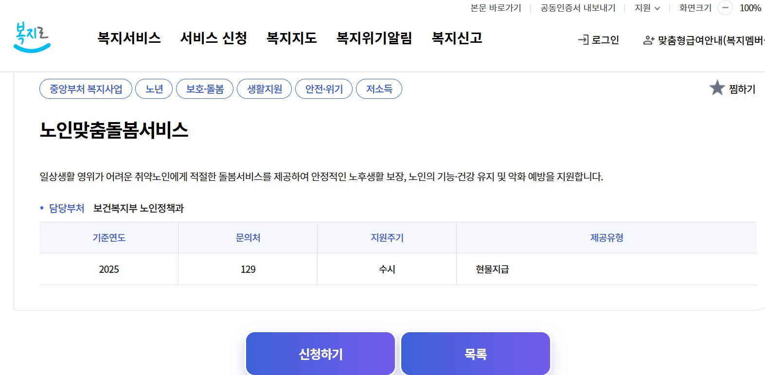 - 돌봄 기본서비스:생활 지원 및 안전 확인