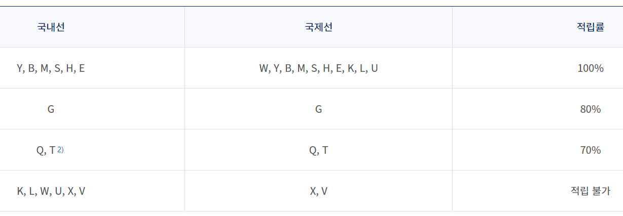 일등석과 프레스티지석은 마일리지 적립률이 늘어나고 일반석이 세분화되어 적립됩니다.