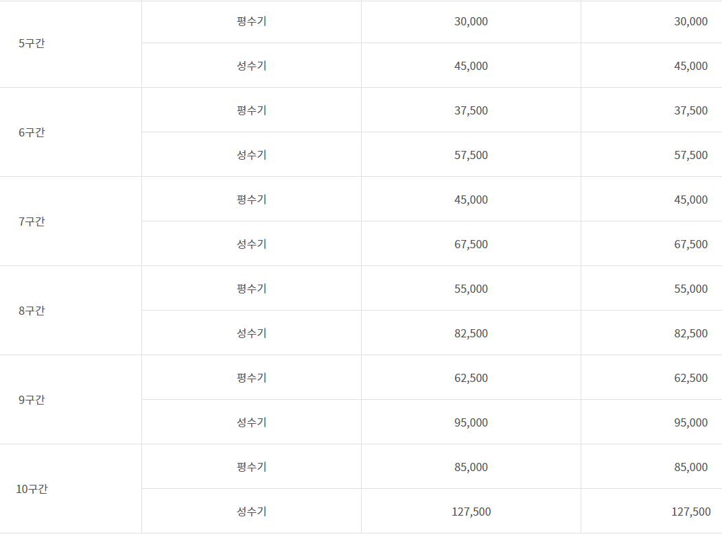 2023년 4월 1일부터 5,6,8,9 구간의 공제 마일리지가 인상됩니다.